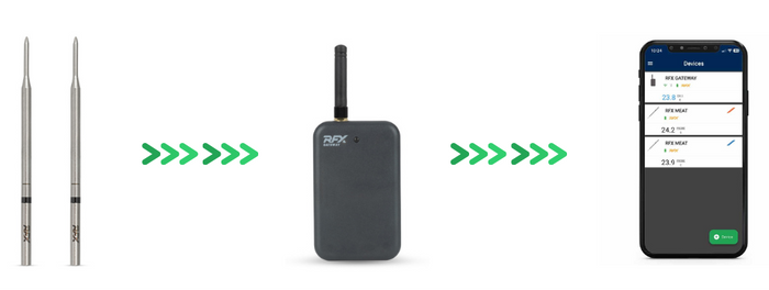 Reichweite von bis zu 300 Metern zwischen dem RFX Meat und dem Gateway