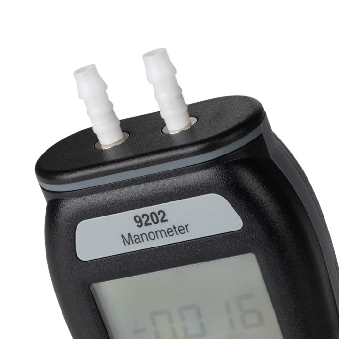 De nieuwe digitale manometer 9202 maakt het mogelijk om positieve en negatieve drukverschillen te meten in het bereik van -137,9 tot 137,9 mbar met een resolutie van 0,1 mbar. De manometer is voorzien van overdrukbeveiliging tot ten minste tweemaal de meetcapaciteit.