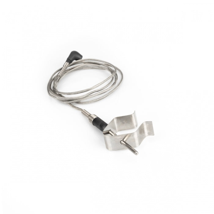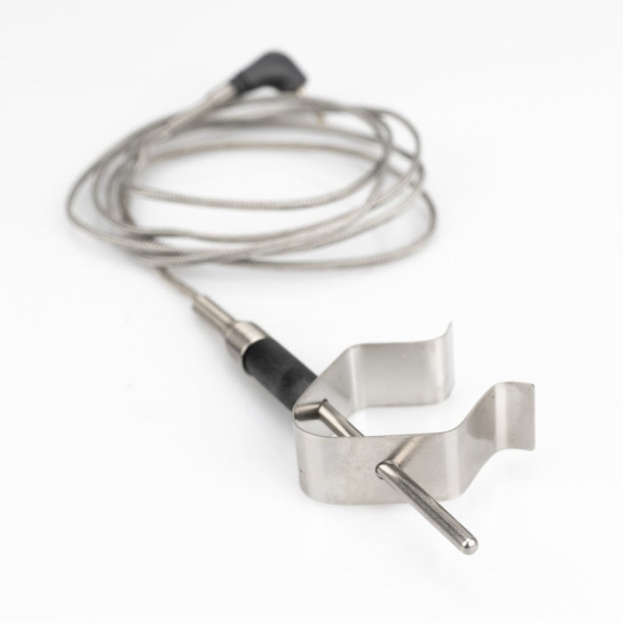 De Air Temp Probe met clip is een lucht‑ en oventemperatuursensor die speciaal is ontworpen voor gebruik met de DOT, Smoke en ChefAlarm® thermometers. Met de meegeleverde clip kun je de probe eenvoudig aan een ovenrek, BBQ‑rooster of ander kookoppervlak bevestigen zodat je de werkelijke lucht‑ en omgevings‑temperatuur dicht bij je gerecht meet – iets wat de ingebouwde thermometer vaak niet nauwkeurig doet.