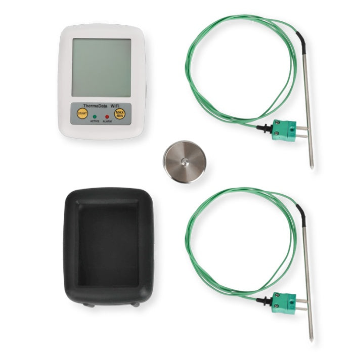 Elke set bevat een tweekanaals wifi-datalogger voor bewaking op afstand. Deze wordt geleverd met twee type K-penetratiesondes die geschikt zijn voor een breed scala aan toepassingen.